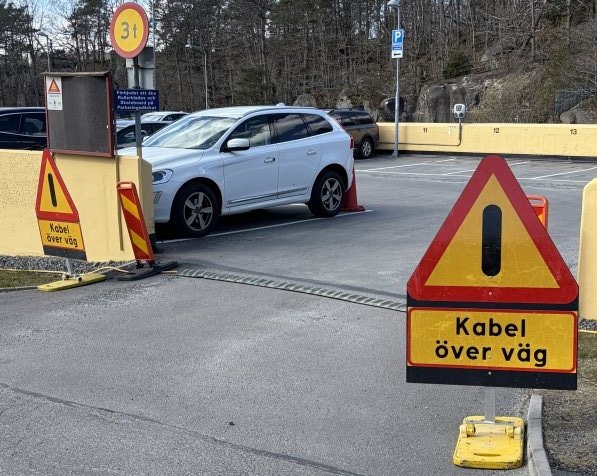 Fredrik och Rasmus från Göteborgs Energi var här och löste problemet. Det var en kabel i deras elskåp, för elförsörjning till Tele2:s skåp, som hade lossnat. Senare på kvällen konstaterade man att kabeln var av. Utan el får vi varken bredband eller TV. En tillfällig kabel är därför utlagd ovan jord.